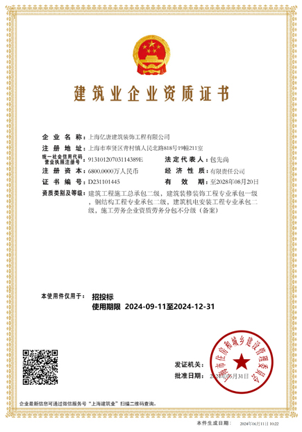 歡迎光臨 上海億唐建筑裝飾工程有限公司 官方網(wǎng)站!榮獲國家裝飾工程施工一級(jí)資質(zhì),國家裝飾工程設(shè)計(jì)乙級(jí)資質(zhì)。